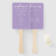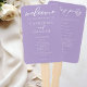 This lovely lilac wedding program hand fan features beautiful white typography on a soft purple background for a spring ceremony in the afternoon. Lavender pastel is a delicate colour choice for an elegant garden occasion.