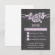 Sweet and pretty Rose Chalkboard Wedding RSVP Card in lilac purple featuring a single lovely rose on a vine on a chalkboard look background. This elegant design is perfect for a spring or summer wedding. Easy to customise, simply add your wedding details in the text fields provided. Click "Customise It" to find more personalisation options.