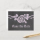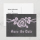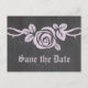 Sweet and pretty Rose Chalkboard Save the Date Postcard in lilac purple featuring a single lovely rose on a vine on a chalkboard look background. This elegant design is perfect for announcing your spring or summer wedding. Easy to customise, simply add your wedding details in the text fields provided. Click "Customise It" to find more personalisation options.