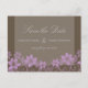 Elegant and refined Rustic Floral Save the Date Postcard featuring a two-toned digital art wood panel background in dark brown and a lovely cascade of beautiful flowers framing the bottom of the design in light purple. This sweet design is perfect for announcing a seasonal wedding with an outdoor or garden theme. Easy to customise, simply add the details of your wedding in the text fields provided. Click on the "Customise It" button to find additional personalisation options.