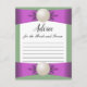 Request marriage advice from your friends and family in style with some beautiful custom advice cards. This note card featuring a charming pearl and lilac purple ribbon design on a serene sage green background can be handed out to your guests on your special day. Although this advice card would be a wonderful touch to any season, the floral lilac and sage colours and shiny pearl would beautifully fit a spring wedding. The names of the bride and groom can be elegantly displayed on the front of the card. Be sure to include monograms of the bride and groom on the back of the card as well.