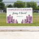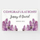 A Lilac Spring Garden Hanging Wedding Banner designed with delicate lilac flowers, on a white background. The text includes: Congratulations, The Bride and Groom's First Names and Wedding Date. To personalise, simply insert your text into our template, replacing the sample. Be sure to view the complete Lilac Spring Garden Wedding Collection for matching Cards and Reception Accessories.