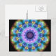 This kaleidoscope shows a pattern in lilac blue and purple, the glowing elements make it look like a candle behind a stain glass window