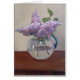 This note card is based on the original artwork of Maryann Lucas. It features a bouquet of purple lilacs in a round glass vase.