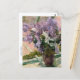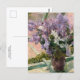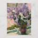 A fine art postcard with the Impressionist painting by Mary Cassatt (1844-1926) an American artist titled, Lilacs in a Window (1880). A lovely bouquet of lavender flowers on a windowsill.