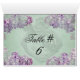 Table number cards that you can easily add your table numbers to before ordering. If you turn this card inside out and refold it you have the full image on both sides of the card. These pretty table number cards have our Vintage Lilacs Locket Wedding design featuring pretty lilacs on a muted sea blue background with birds, and areas you can easily customise.