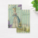 Lilas au printemps, translated simply means Lilacs in spring. This romantic shabby chic very French looking collage compromises of a vintage 18th century fashion plate, a charming vintage image of a little dog on a cushion, butterflies and lilacs. All laid over a striped blue and cream background. ©Wickedly Lovely, all rights reserved.
