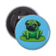 Cute green Pug resembling a frog sitting on a lilipad. Background colour can be changed.