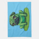 Cute green Pug resembling a frog sitting on a lilipad. Background colour can be changed.