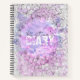 Introducing our unique mesmerising customisable notebook. The cover is adorned with an intricate and elegant monochrome floral pattern that forms a beautiful border around the central area. This artistic splendour provides a frame that enhances the allure of the notebook. The central part of the cover features a delicate watercolor background, where shades of lilac and azure meld seamlessly, creating a soothing and appealing backdrop. Overlaid on this serene watercolor canvas is the customised text written in a modern distressed font and in a stylish calligraphy. This text is just an example and can be replaced with your name or a title of your choice, adding a personal touch to this visual masterpiece. Every stroke of ink on these pages is inspired by the harmonious blend of artistry that encases it. Whether for personal use or as a thoughtful gift, this notebook exudes elegance and creativity, making it a perfect companion for those who appreciate the blend of art and functionality.
