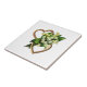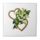 A graphic design of lily of the valley and two intertwined gold hearts on a decorative tile. You are sure to find many uses for this lovely tile. Other items with design are available.