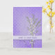 Lily of the valley bouquet with ribbon on purple pin dot background for 111th birthday.