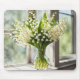 Lily of the valley bouquet in a vintage vase in a sunny farmhouse window