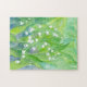 A pretty floral puzzle featuring a bouquet of lily of the valley flowers painted with watercolor in soft pastel shades of green and blue.