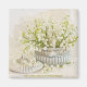 A still life of tiny white lily of the valley flowers in a dish surrounded by lace. Photography by Sandra Foster © - Sandra Foster Designs.