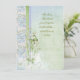 Lily of the valley bouquet with butterfly and pearls. On white tulle and soft green and blue background.