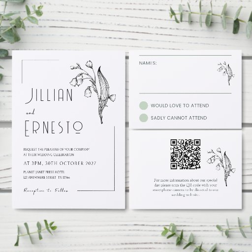 Lily of the Valley - White Collection RSVP Card. Space for additional information on the back.