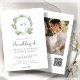 A customisable modern wedding invitation featuring a delicate lily of the valley floral design surrounding an elegant monogram, on a clean background with elegant lettering. On the reverse, there is a photo of the happy couple, and QR code that you can link to your wedding website via the personalisation feature.