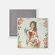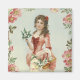 This young lady is collecting and filling her hat with Lily of the Valley flowers. Background is light blue and border of pink Wild Roses frame the Victorian scene.