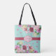 This pretty tote bag features watercolor lily and peony flowers on an aqua background. You can personalise the monogram with your own name and initial.