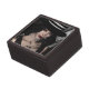 I am so pleased with this little trinket box! The website photo doesn't do it justice. The photo on top is so glossy and beautiful! The colors are awesome. The lid and the box both have 2 little magnets so that the lid stays on, which I love. It arrived in good time. My 11 year old granddaughter is going to love it. Many thumbs up! There was no printing on this item, but the colors in the photo of the box lid are beautiful and vivid.