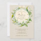 An elegant and sweet baptism invitation for a boy or a girl, featuring a wreath of lily of the valley flowers painted in watercolor and a pale yellow bow. A stylish and classy invitation for a baby girl's or baby boy's baptism or Christening.