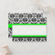 Direct your guests to their tables with style. Lime and black Damask Place Card Holder. Fully customisable and personalised. You will find matching wedding stationery in this gallery.