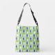 This crossbody bag is covered with mid-century modern lime and blue rectangles. Fun for anyone.