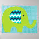 Lime and Teal Elephant Nursery Poster