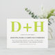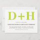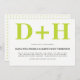 Lime and white initials bold typography wedding invitation. The back includes a geometric pattern.