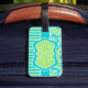 Lime, Aqua, White Striped Damask Luggage Tag