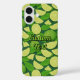 Lime slices and leaves. Seamless pattern. Custom background colour. Custom text.