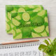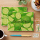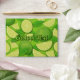 Lime slices and leaves. Seamless pattern. Custom background colour. Custom text.