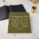 Celebrate your union with this olive green custom wedding guest book, featuring a unique earthy tone that perfectly suits autumnal or garden weddings. The cover showcases intricate white baroque-style monograms and elegant script, offering a sophisticated, high-contrast look. Durable and stylish, this personalized keepsake provides a warm and inviting place for guests to leave their signatures and well-wishes for years to come.