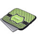 This personalised lime green, black, and white polka dots and stripes laptop sleeve has text boxes for you to customise with your own name, initials, business name, or other text. If you need any help customising, please email niteowlstudio@gmail.com.