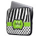 This chic and trendy personalised lime green, black, and white zebra stripes and polka dots laptop sleeve has text boxes for you to add your name and monogram. ****PLEASE email me if you want a LARGER size one made up, as selecting it on your own will cause the design and text boxes to slip. If you need help customising this with your own info, please email niteowlstudio@gmail.com for help.