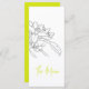 Modern simple sketched drawing wedding monotone with lime green menu. Perfect for a simple modern blossom wedding. Personalise this blossom wedding menu design with your own four course meal details. Other matching items available. Orange blossom botanical drawing hand art by Sarah Trett for www.mylittleedenweddings.com