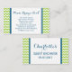 Cute baby shower please bring a book insert cards in dark navy blue, white and bright lime green chevron zigzag stripes pattern. Add a card to each invitation you send out to start a library for baby.