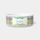 Lime & Blue Plaid Personalised food or water bowl for dogs and cats. Available in several colours combos.