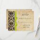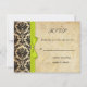Lime Damask Bow Wedding RSVP Card