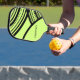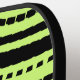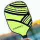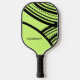 This pickleball paddle has an abstrack print with black stripes against a bright lime green background. It's ready to be personalised with a name on the front so that you can create your own one of a kind gift for your favourite pickleball player.