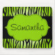 A stylish lime green and black zebra pattern is featured on this personalised mousepad.