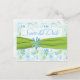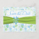 This bright blue and lime green flowery save the date post card matches the items shown below.