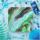 Blue, green, black and white swirl patterns pour painting cells birthday plates.