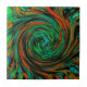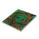 Lime Green and Orange Abstract Retro Twirl Ceramic Tile