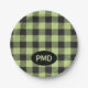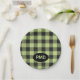 Lime Green Black Buffalo Plaid Monogram Initials Paper Plate