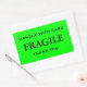 Lime Green/Black Fragile. Handle with Care. Rectangular Sticker