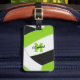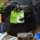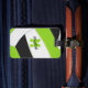 This volleyball themed luggage tag features the image of a realistic, abstractly oversized volleyball with lime green, black & white panels - personalise with player name and monogram on the front, address and phone number on the back - by katz_d_zynes