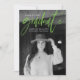 Modern graduation announcement card featuring your graduate's favourite photo on the front with "Graduate" in a lime green handwritten script. Personalise the front of the announcement by adding the graduate's name, school name, and graduation year. The trendy graduation announcement reverses to display an additional 3 photos with space for text such as future plans, graduation details, party details, etc. The 4 photo graduation announcement is perfect for both high school and college graduates.