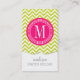 Lime Green Chevron Zigzag Personalised Monogram Business Card